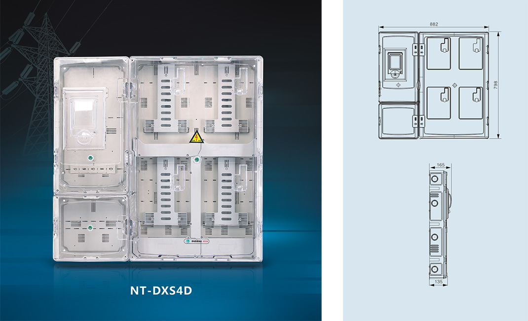 電表箱生產(chǎn)廠家-浙江南騰電氣有限公司研發(fā)的NT系列透明塑料電表箱,采用進(jìn)口聚碳酸酯(PC)和阻燃ABS工程塑料制成。具有抗沖擊、抗老化、耐腐蝕、透明度高、抗紫外線、安裝方便等優(yōu)點(diǎn),并且具有用電安全保護(hù),用戶分離控制,數(shù)據(jù)采集, 防盜電等功能。產(chǎn)品適合安裝電子式、機(jī)械式、智能IC卡預(yù)付式、智能多費(fèi)率式電表。南騰NT系列透明塑料電表箱自推出市場(chǎng)以來(lái),憑借其完美的設(shè)計(jì)理念,在電表箱行業(yè)遙遙領(lǐng)先。
