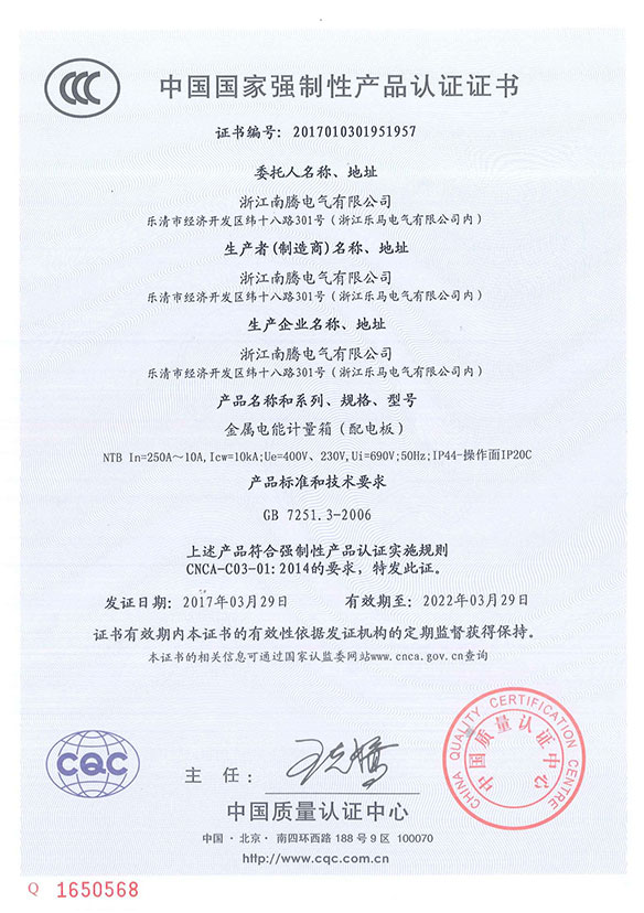 DBX電表箱CCC證書
